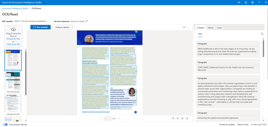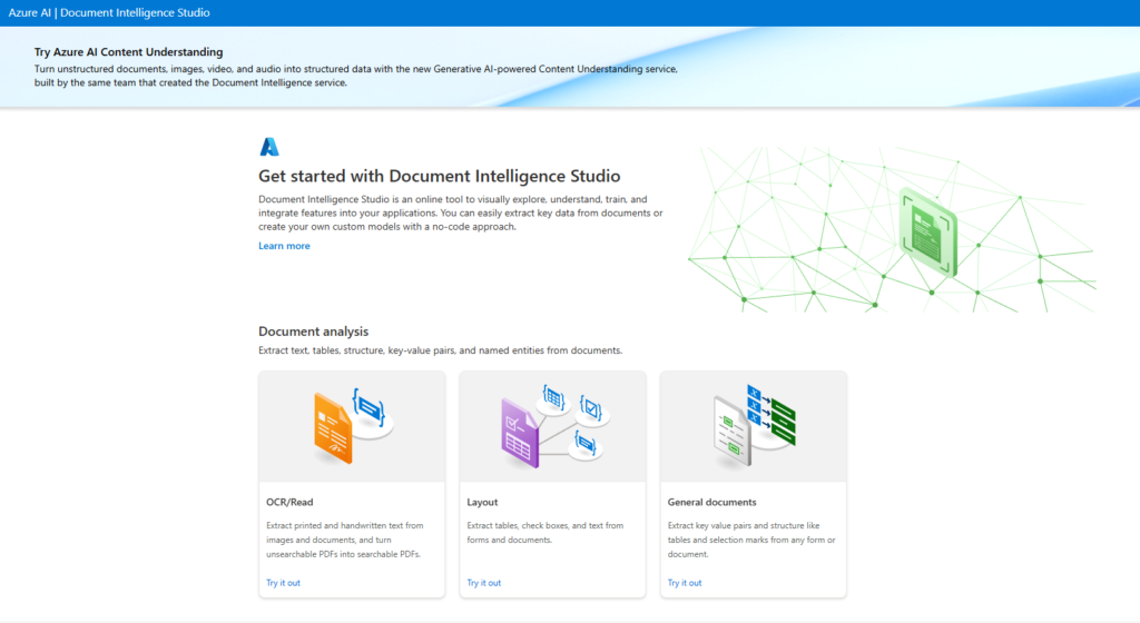 OCRは Document Intelligence Studio が事実上の入口になっており、