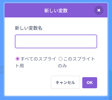 そこに「スコア」と記入し、「すべてのスプライト用」にチェックをいれたままにします。