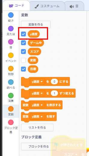 ジャンプに必要なのは、ネコ専用の変数1つです。